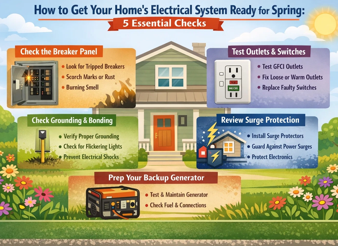By tackling these five checks, you can head into spring with confidence. If anything looks questionable—or if you’d rather leave it to the pros—our experienced electricians are ready to help with inspections, upgrades, and installations to keep your home powered safely all season long.